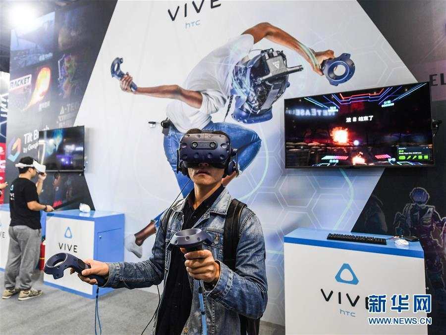 11月6日,参观者在博览会现场体验虚拟现实技术。