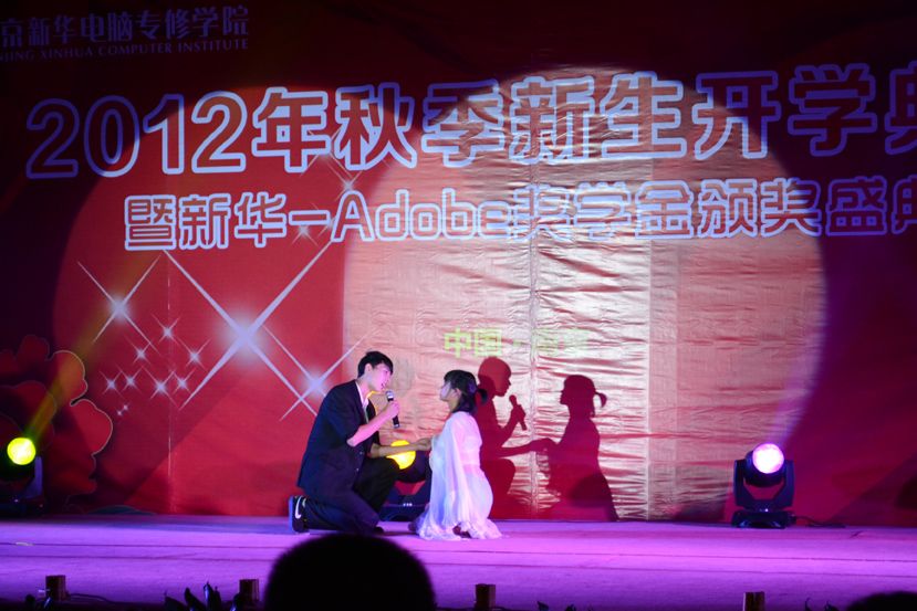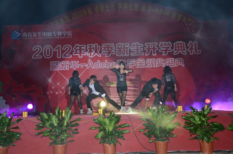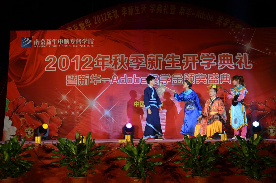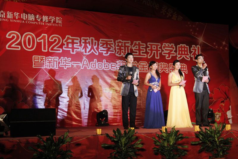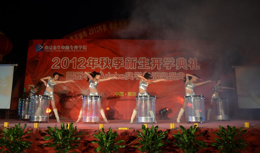 金秋九月,丹桂飘香。2012年9月25日,南京新华电脑专修学院彩旗飘扬,18点18分,全体师生精神抖擞的齐聚在学校广场。随着热情洋溢的《水鼓》舞蹈的演绎,学院2012年新生开学典礼暨Adobe奖学金颁奖盛典拉开了序幕。
