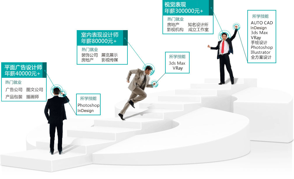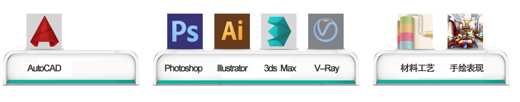 | 第二阶段 | Photoshop图像处理 | 1、较好的艺术鉴赏力和美术表现力; 2、具有一定的空间构成表现能力; 3、熟练操作各类艺术设计软件的工作能力 4、具备基本的建筑和室内设计理解力和艺术效果表现力 |